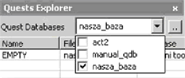 База данных автоматически обновляется, и изменения сохранять не надо (в отличие от других файлов). Теперь база данных готова, и ее можно использовать в нашем модуле. Если вы создадите несколько баз данных, их содержимое можно просмотреть, выбрав нужные базы в списке Базы данных заданий (Quest Databases).