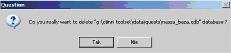 Удалить базу данных (Delete Database). Удаляет файл базы данных. При выборе этого пункта откроется окно запроса (Question), в котором вы должны подтвердить операцию удаления базы.