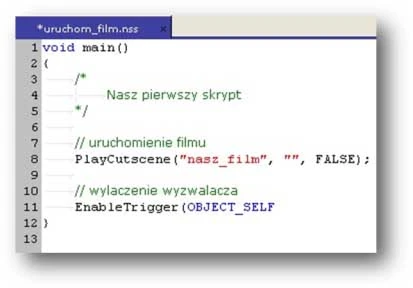 Это означает, что скрипт zapusk_film.nss (uruchom_film.nss) не был скомпилирован должным образом. Описание ошибки вы найдете в следующей строке.