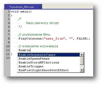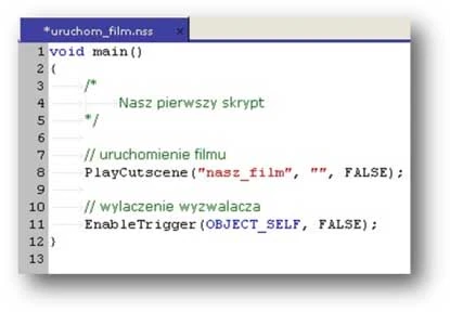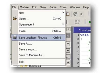 Вот и все. Наш скрипт полностью готов. Теперь необходимо его сохранить. В меню Файл (File) выберите пункт Сохранить zapusk_film.nss (Save uruchom_film.nss).