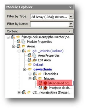 Как вы помните, созданная нами начальная точка находится в первой локации, т. е. g31_peschera (g31_jaskinia). Установите там триггер и дважды щелкните по нему. Лучший способ это сделать – воспользоваться окном обзора модуля (Module Explorer).