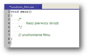 Пора написать наш первый скрипт. Как видите, каждый скрипт начинается с функции void main(). Содержание скрипта необходимо ввести в тело функции, т. е. между круглыми скобками.