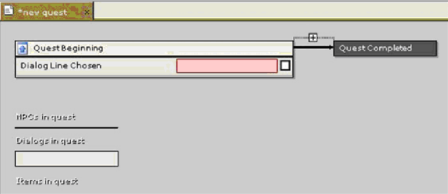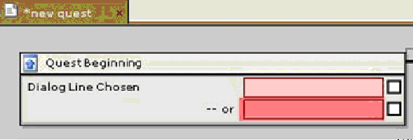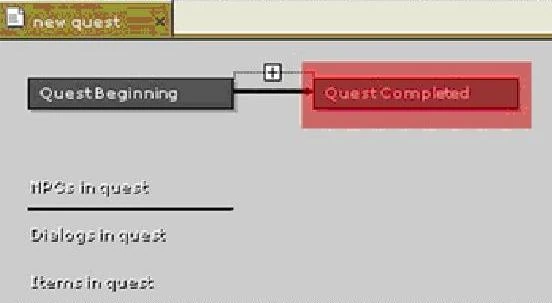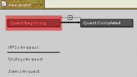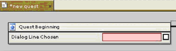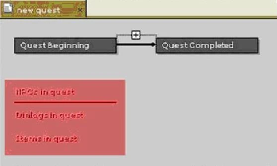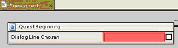 Если игрок делает реплику непрогрессивной, квест не изменится, и эта же реплика будет доступна при следующем диалоге с персонажем. Это полезно для тех случаев, когда вы хотите, чтобы игрок принял квест, но при этом имел возможность еще раз расспросить о подробностях квеста до его выполнения. Учтите, что если создать диалог квеста, но не указать реплику ни в одном квесте, этот диалог не будет доступен в игре. А теперь нам необходимо задать параметры Начало квеста (Quest Beginning). Щелкните левой кнопкой маши по блоку Начало квеста (Quest Beginning).