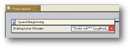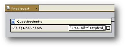 Геральт получит квест, если игрок выберет реплику "Согласен" (Zrobi się) во время диалога с Зигфридом. Так как это и есть начало квеста, необходимо выбрать эту реплику и создать условие получения квеста. Выберите пункт Начало квеста (Quest Beginning) и щелкните по нему правой кнопкой мыши.