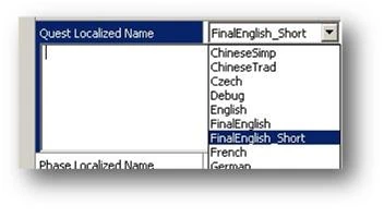 Локализованное имя квеста (Quest Localized Name). Здесь указывается имя квеста. Чтобы ввести текст, щелкните по правой ячейке параметра. Откроется небольшое окно.