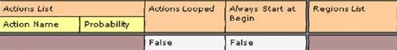 - Список зон (Regions List). Список зон, в которых персонаж выполняет указанные действия. Имя зоны, указанное в этом столбце, должно соответствовать параметру хотя бы одной области действий.