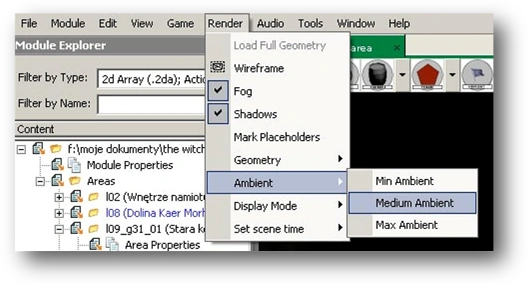 Если локация после загрузки оказалась слишком темной, вы можете сделать ее светлее. Для этого выберите Освещение ‐> Среднее освещение (Ambient ‐> Medium Ambient) в меню Изображение (Render).