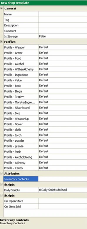 Два самых важных параметра: При открытии магазина (On open store, введите значение swords_upgrades) и При продаже предмета (Item Sold, введите значение swords_u_onsold).