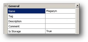 Этот параметр определяет, создаем ли мы хранилище (значение True) или магазин (значение False). Кроме того, мы должны дать хранилищу имя. Щелкните по правой ячейке параметра Имя (Name), введите Sklad (Magazyn) и нажмите клавишу Enter.