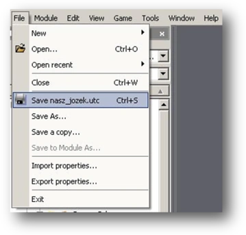 Теперь необходимо сохранить шаблон Юза. Для этого в меню Файл (File) выберите пункт Сохранить nash_yuz.utc (Save nasz_jozek.utc).