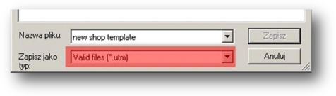 Если в окне указан другой тип файла, это, возможно, означает, что вы случайно пытаетесь сохранить содержимое другого открытого окна. Прежде, чем сохранять шаблон персонажа, убедитесь, что у вас активно окно Новый шаблон магазина (new shop template). Если оно не активно, его заголовок будет отображаться серым цветом.