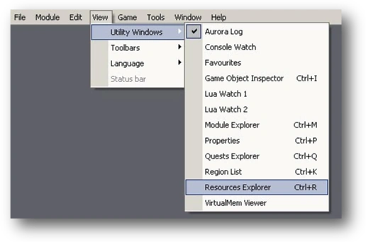 Теперь необходимо присвоить шаблон магазина (вернее, хранилища) шаблону персонажа. Как я уже упоминал, для этой цели мы используем Юза. Откройте окно обзора ресурсов. Для этого в меню Вид (View) выберите Окна ‐> Обзор ресурсов (Utility Windows ‐> Resources Explorer).