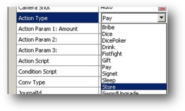 В разделе Текст реплики (Node Text) появится новый параметр. Щелкните по правой ячейке параметра Тип действия (Action Type) и выберите значение Store.