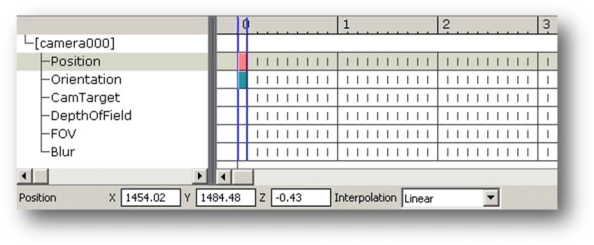 Because we’ve turned on the automatic adding of keys, these keys have been added for us. Note that the keys have been placed in the Position and Orientation paths of the camera. Naturally, keys can be added, moved, or deleted manually, but that will be covered in a minute. For now, click the key in the Position path: