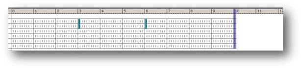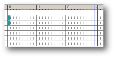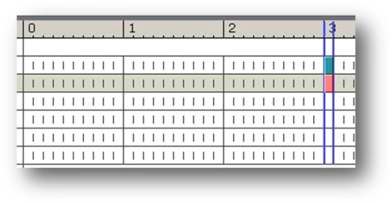 Using the mouse wheel, you can zoom in or out when looking at the timescale so that you have a more detailed view of it (when zoomed in). Naturally, the window with the timescale has to be active to be able to do this. To activate the timescale window, click the time marker. Note that the timescale goes only to second 10: