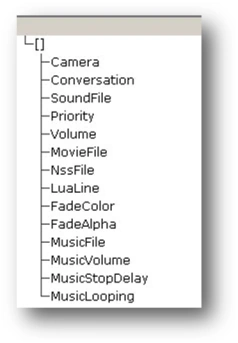 • Conversation. Contains the name of the conversation file which will be played in the cutscene.