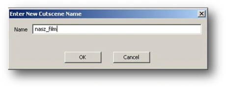 Enter a name for the cutscene in the Enter New Cutscene Name window. Type in our_film: