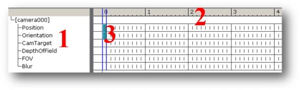 These are time markers showing our current position in time. The time markers are in the 0 position, which means that the cutscene is just starting. There is a timescale in the top part of the window: