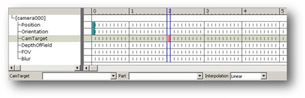 This displays options related to the orientation of the object at the bottom of the window. What about manually adding a key? To demonstrate, let’s say we want to add a key on the CamTarget path in second 2. As a reminder: the CamTarget path determines the spot at which the camera will look. Click the appropriate position in the CamTarget path: