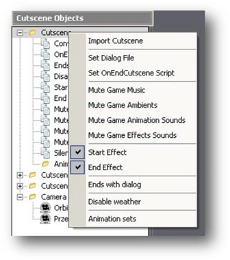 To change any given option you need to right-click the Cutscene tree in the Cutscene Objects window. A menu will appear, allowing you to change any of these options: