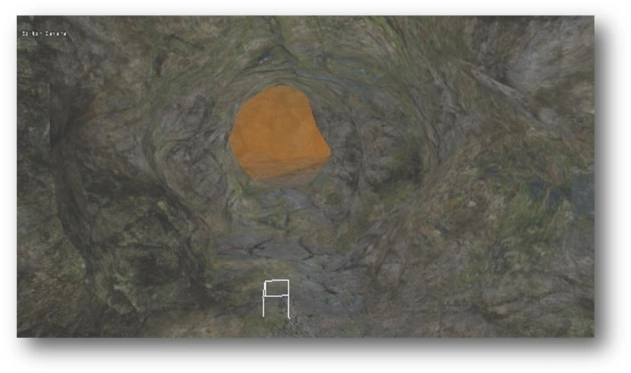 This new icon means that the selected camera is active and can be moved around in the Area Editor. How do we move the camera itself? The same way we move around in the area, i.e. using the and W A S D buttons to move, and by right-clicking and holding to rotate. Now, use the W A S D buttons to move the camera up to the cave ceiling: